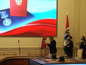 25.11.2021 г в малом зале администрации Новосибирской области прошла торжественная церемония награждения обучающихся Новосибирской области памятными медалями Совета Федерации Федерального Собрания Российской Федерации "За проявленное мужество в рамках Всероссийского гражданско-патриотического проекта Совета Федерации "Дети-герои". Награды учащейся были вручены сенатором Совета Федерации от Новосибирской области В.Ф. Городецким