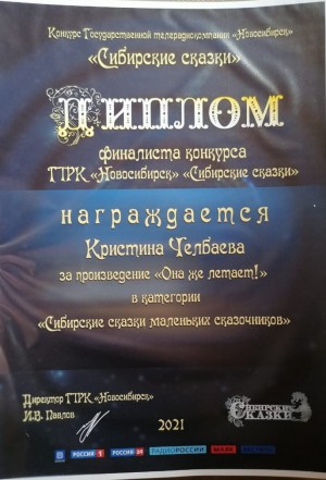 Ученица 4 "А" класса Челбаева Кристина стала финалисткой конкурса "Сибирские сказки - 2021" в категории "Сказки для маленьких сказочников" организованным ГТРК "Новосибирск" канал "Россия". Поздравляем с высоким достижением!!!
