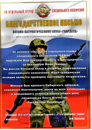 Поздравляем Фоменко А.Л. - преподавателя-организатора ОБЖ МБОУ СОШ №71 и курсантов ВПК "Гвардеец" с занесением на доску почёта администрации Дзержинского района г.Новосибирска по итогам работы в 2021 году.