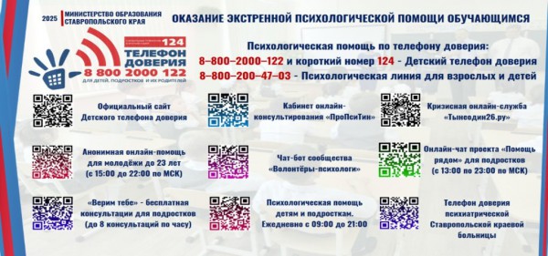 - 8(800)2000-122 – Единый общероссийский детский телефон доверия